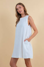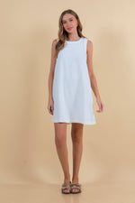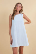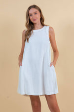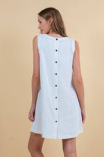 LINEN BLEND SLEEVELESS BACK BUTTON MINI DRESS - 27154D