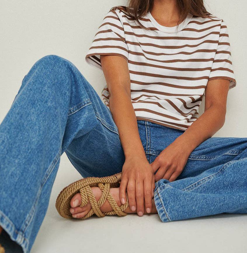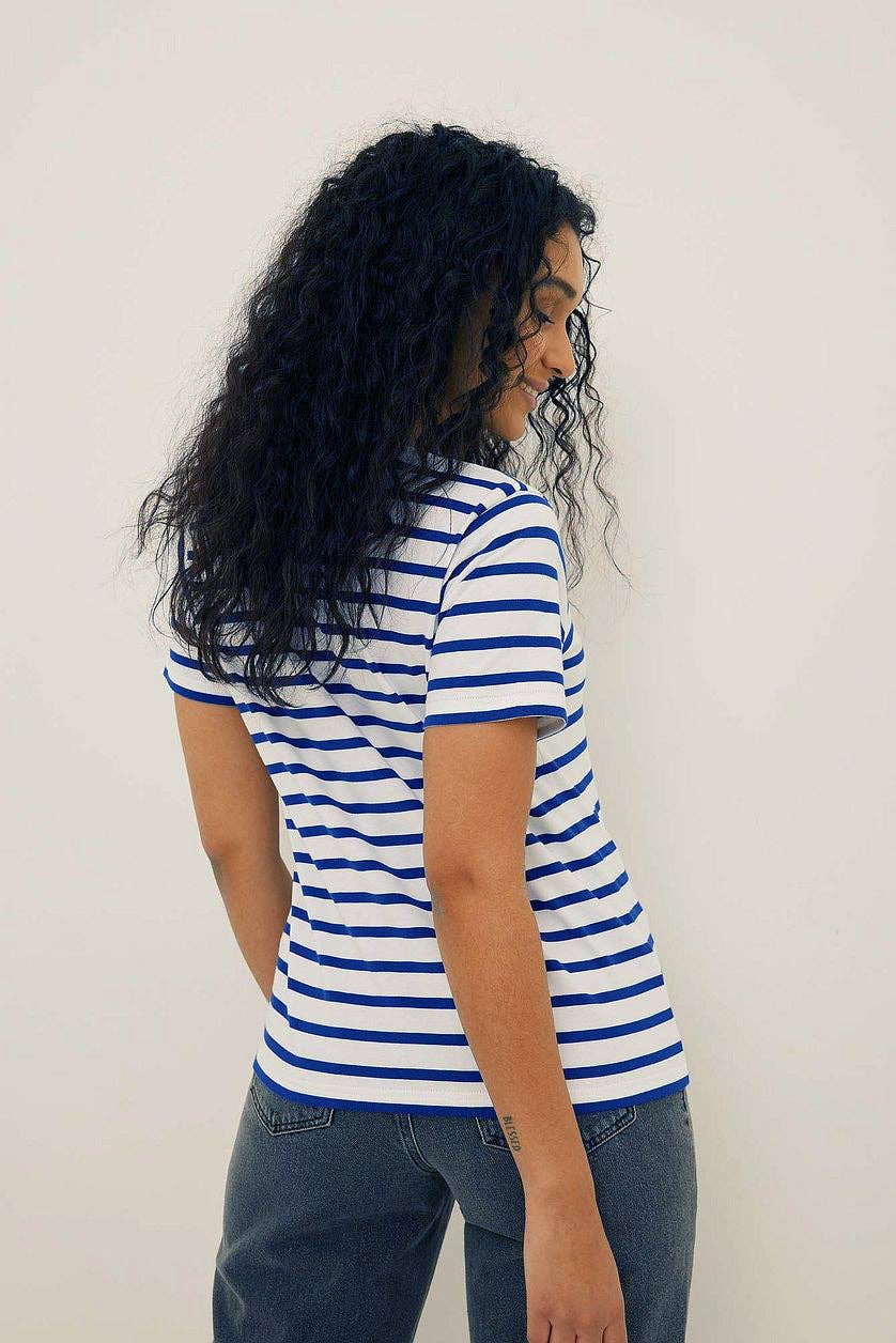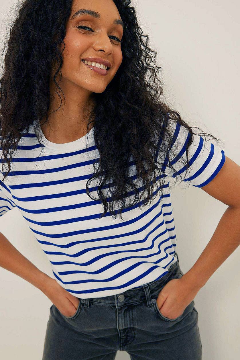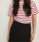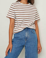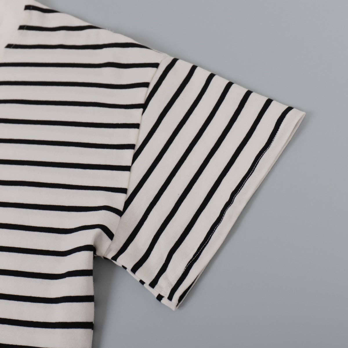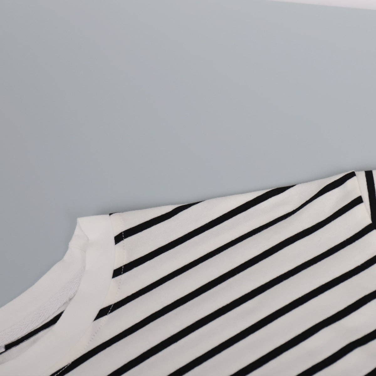 Round Neck Striped Loose Short Sleeves Top DP25B437