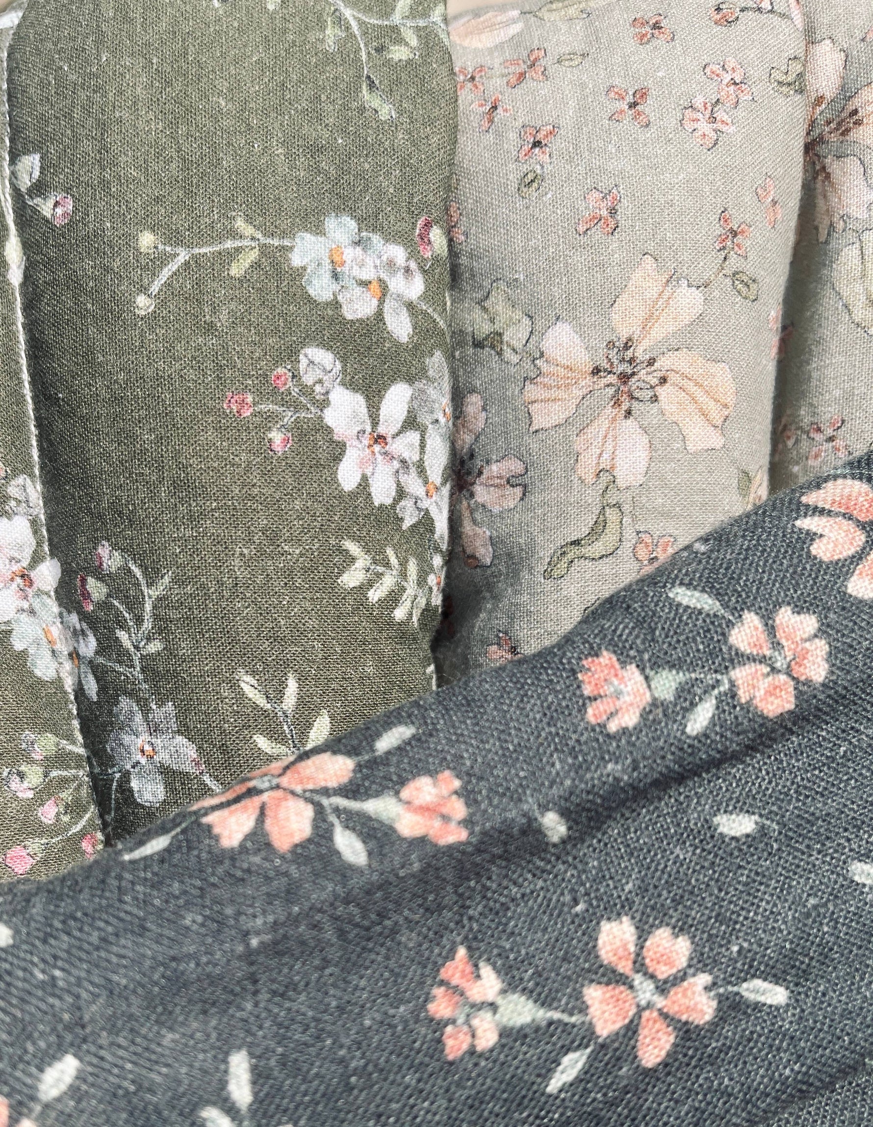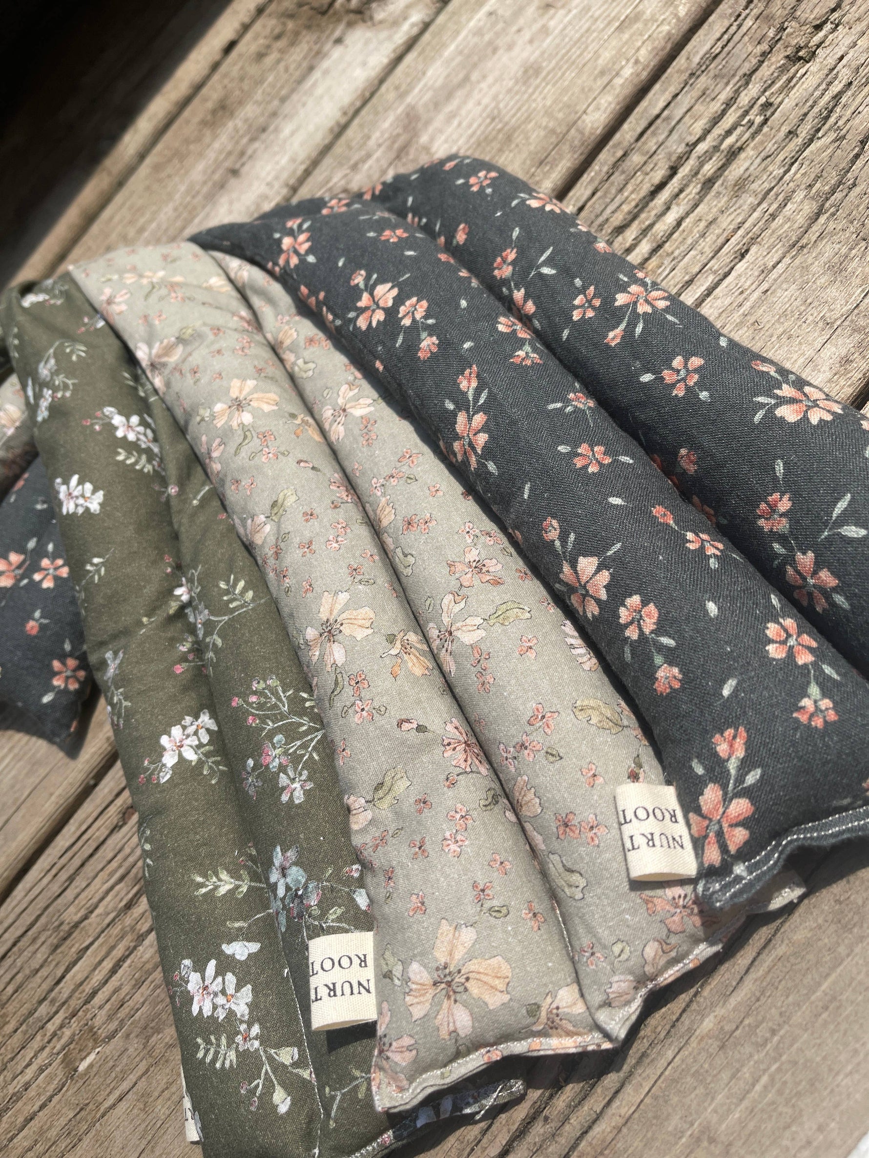 Unit price perHandmade to order with Oeko-Tex Standard certified 100% cotton or linen in beautiful assorted florals and nature inspired colors, filled with rice and with or without organic lavender buds/ chamomile buds/ peppermint leaves and essential oils for a very light, relaxing scent. Shape is made to rest along the base of your neck and over shoulders, or around belly during pregnancy+birth to ease muscle tension and aid in relaxation and rest.
